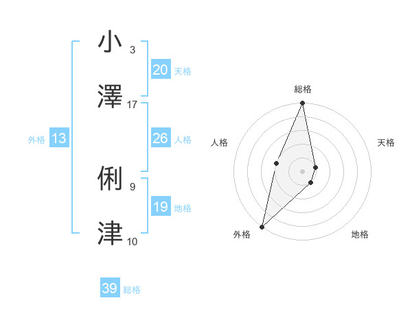 小澤 俐津さんを姓名の画数から五運を鑑定
