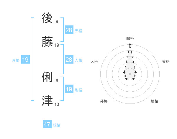後藤 俐津さんを姓名の画数から五運を鑑定