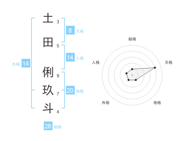 土田 俐玖斗さんの天格は8画の4点!
