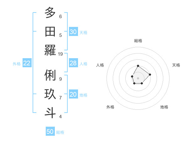 多田羅 俐玖斗さんを姓名の画数から五運を鑑定