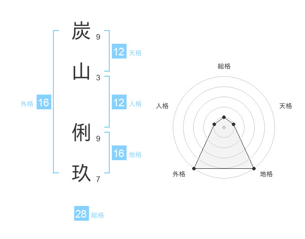 炭山 俐玖さんの外格は16画の5点!