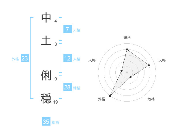 中土 俐穏さんを姓名の画数から五運を鑑定