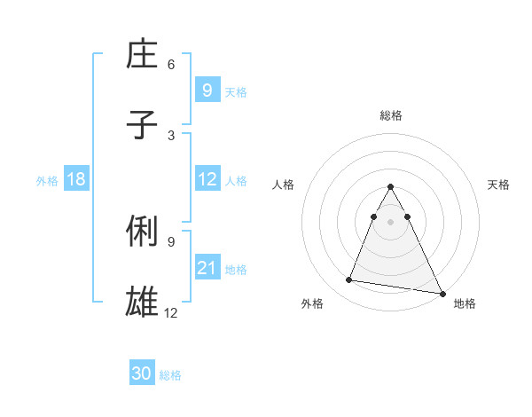 庄子 俐雄さんを姓名の画数から五運を鑑定
