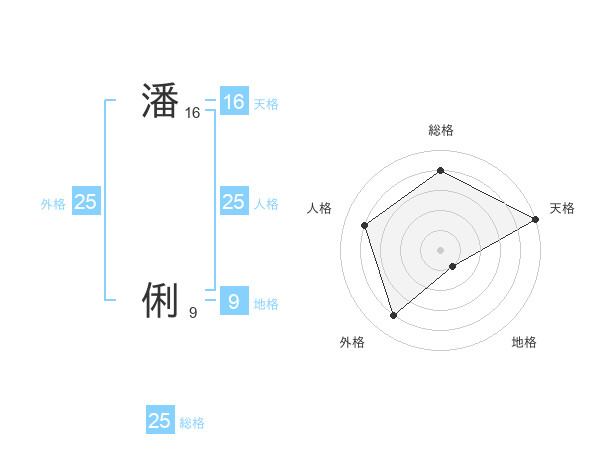 潘 俐さんの総格は25画の4点!