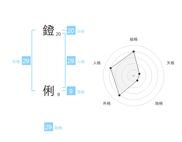 鐙 俐さんの総格は29画の4点!