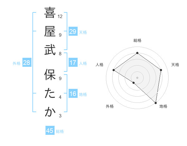 喜屋武 保たかさんの総格は45画の4点!