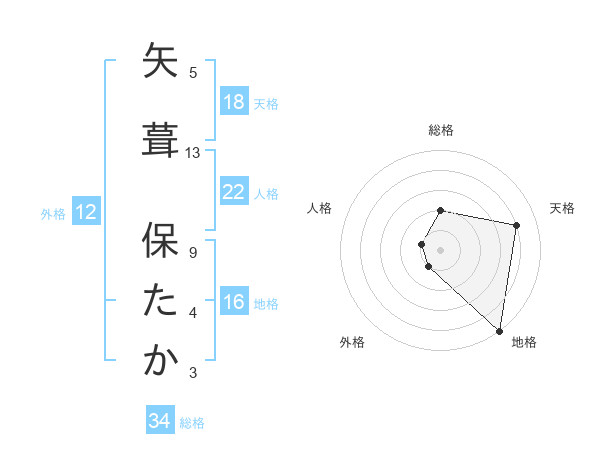 矢葺 保たかさんの総格は34画の2点!