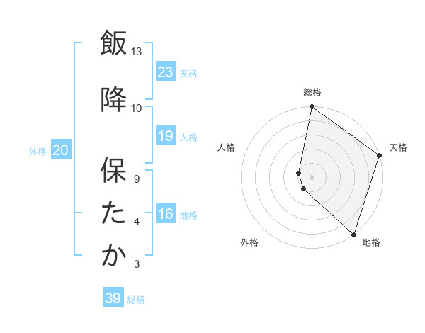 飯降 保たかさんの天格は23画の5点!