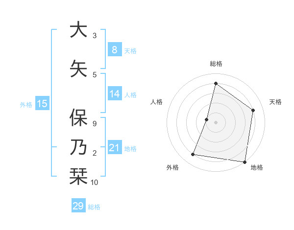 大矢 保乃栞さんの天格は8画の4点!