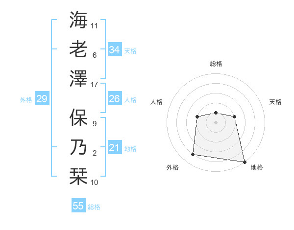 海老澤 保乃栞さんを姓名の画数から五運を鑑定