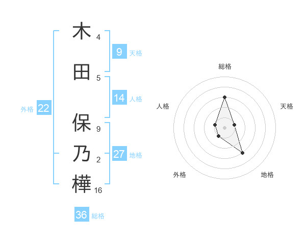 木田 保乃樺さんを姓名の画数から五運を鑑定