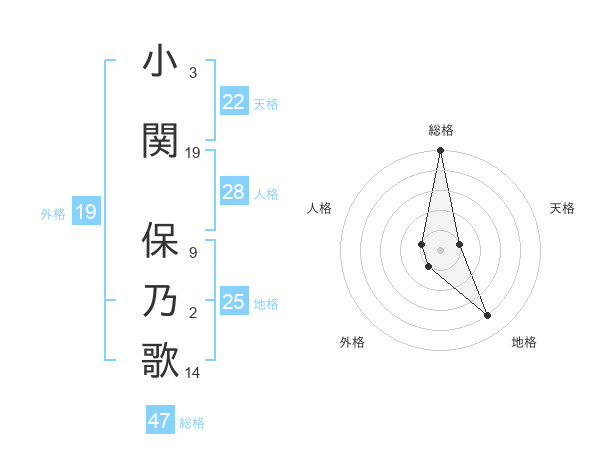 小関 保乃歌さんを姓名の画数から五運を鑑定