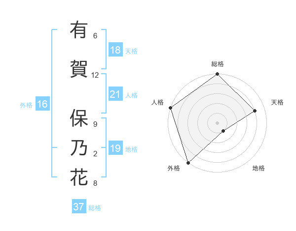 有賀 保乃花さんを姓名の画数から五運を鑑定