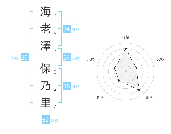海老澤 保乃里さんを姓名の画数から五運を鑑定