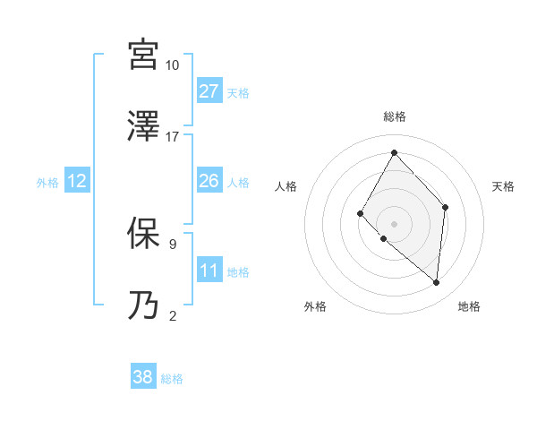 宮澤 保乃さんを姓名の画数から五運を鑑定