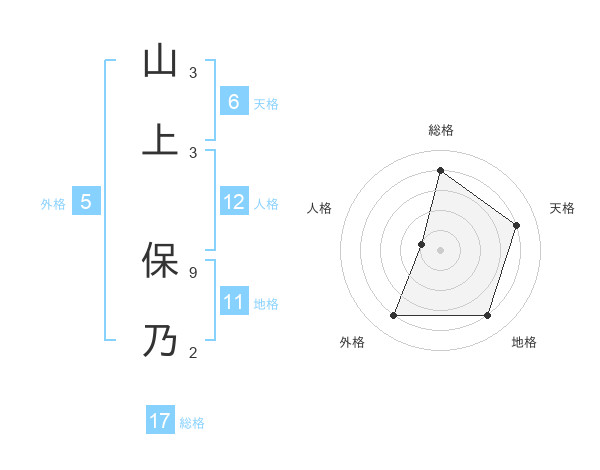 山上 保乃さんの総格は17画の4点!