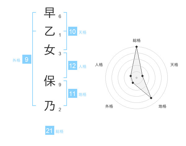早乙女 保乃さんを姓名の画数から五運を鑑定