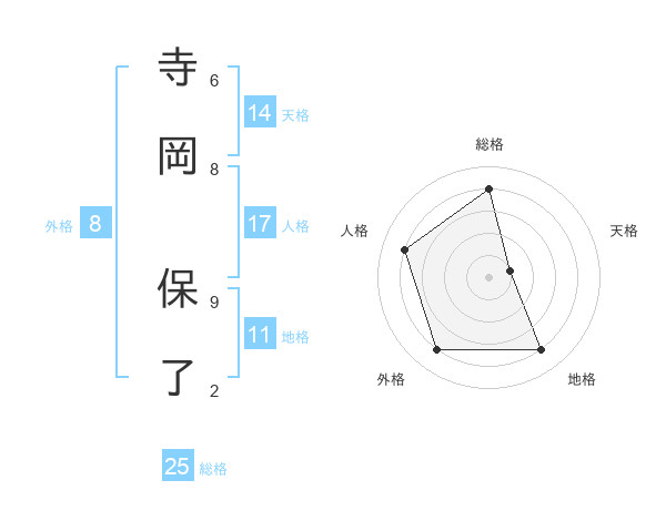 寺岡 保了さんの総格は25画の4点!