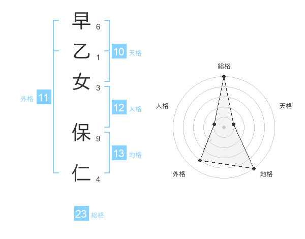早乙女 保仁さんを姓名の画数から五運を鑑定