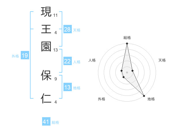 現王園 保仁さんを姓名の画数から五運を鑑定