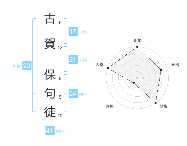 古賀 保句徒さんを姓名の画数から五運を鑑定