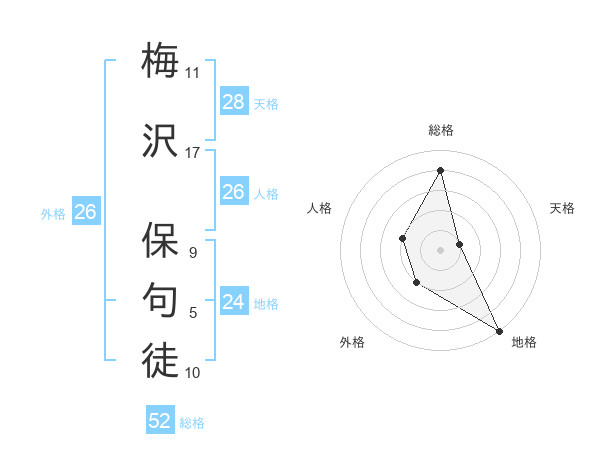 梅沢 保句徒さんの総格は52画の4点!