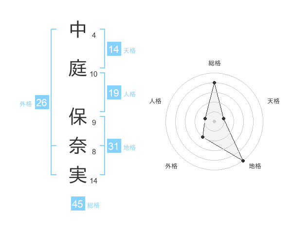 中庭 保奈実さんを姓名の画数から五運を鑑定