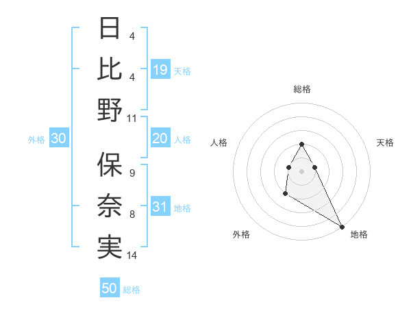 日比野 保奈実さんを姓名の画数から五運を鑑定