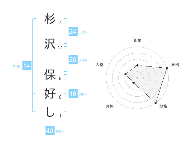 杉沢 保好しさんを姓名の画数から五運を鑑定