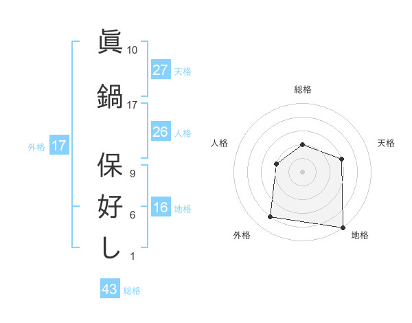 眞鍋 保好しさんの地格は16画の5点!