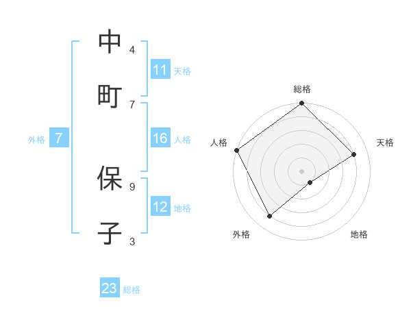 中町 保子さんの総格は23画の5点!