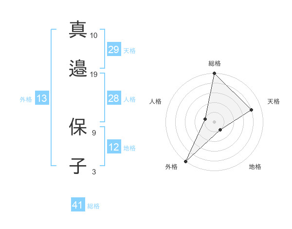 真邉 保子さんの天格は29画の4点!