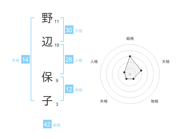 野辺 保子さんの総格は42画の3点!