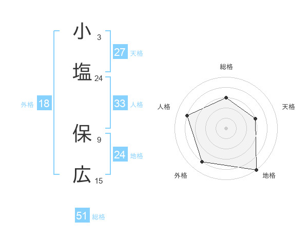 小塩 保広さんの総格は51画の3点!