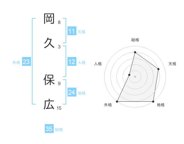 岡久 保広さんの総格は35画の4点!