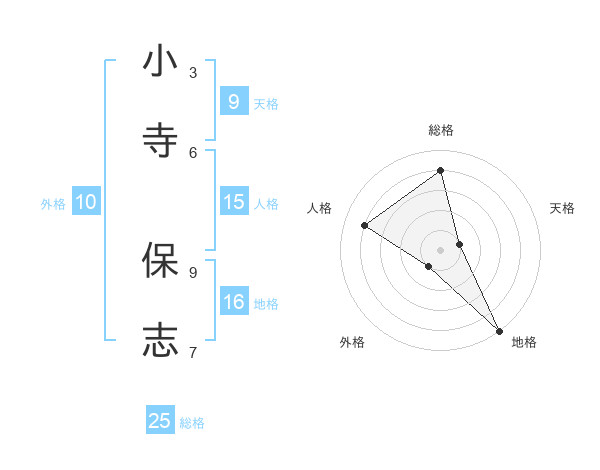 小寺 保志さんの総格は25画の4点!
