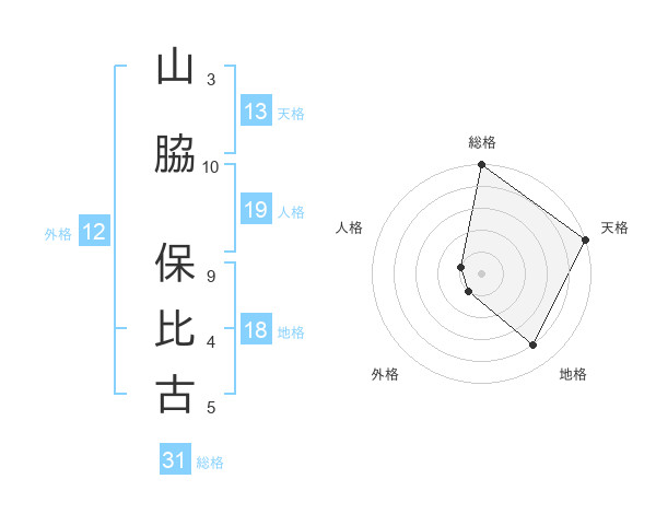 山脇 保比古さんを姓名の画数から五運を鑑定