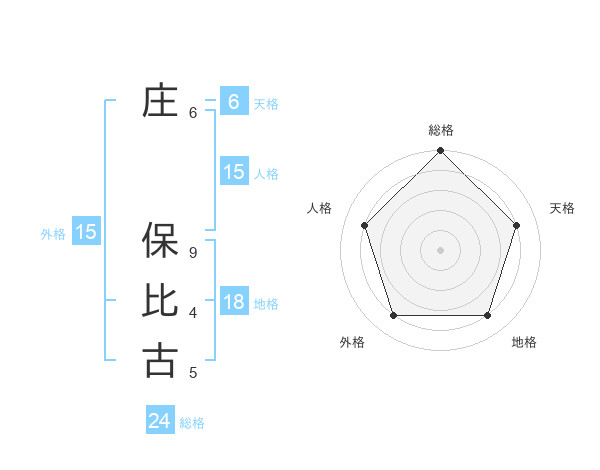 庄 保比古さんの総格は24画の5点!