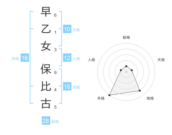 早乙女 保比古さんを姓名の画数から五運を鑑定