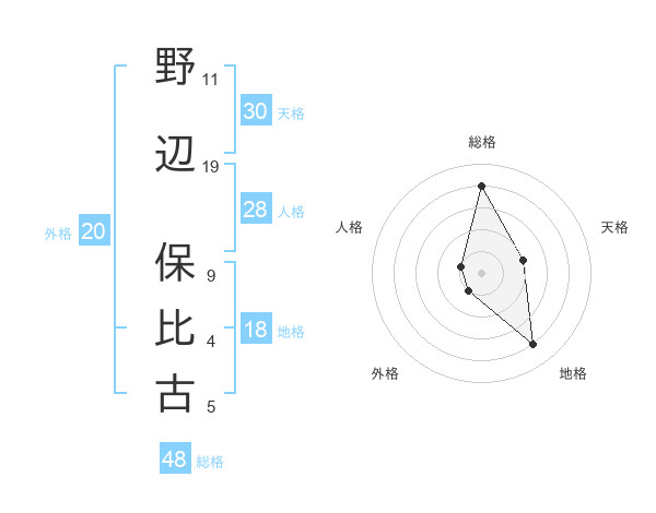 野辺 保比古さんを姓名の画数から五運を鑑定