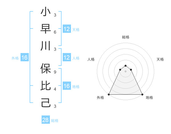 小早川 保比己さんを姓名の画数から五運を鑑定