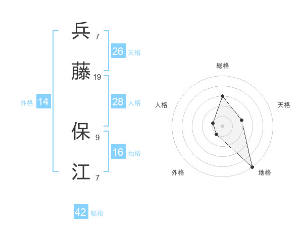 兵藤 保江さんを姓名の画数から五運を鑑定