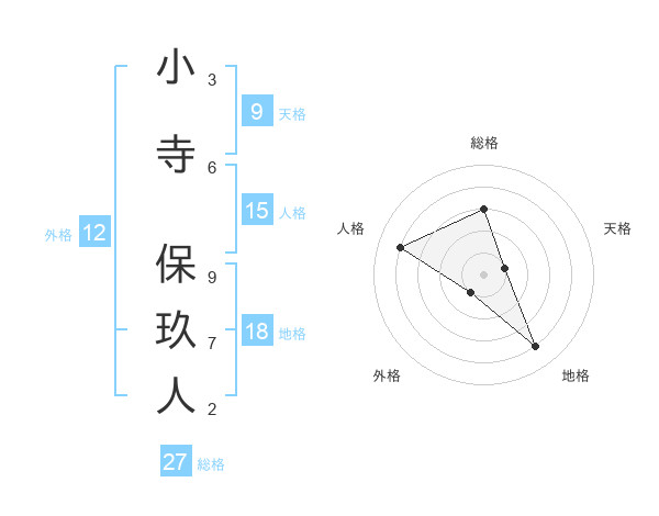 小寺 保玖人さんの総格は27画の3点!