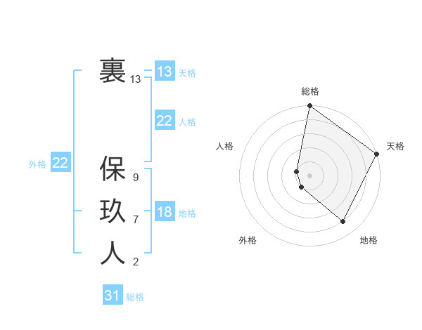 裏 保玖人さんを姓名の画数から五運を鑑定