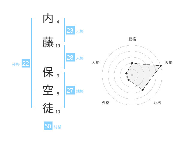 内藤 保空徒さんの総格は50画の2点!