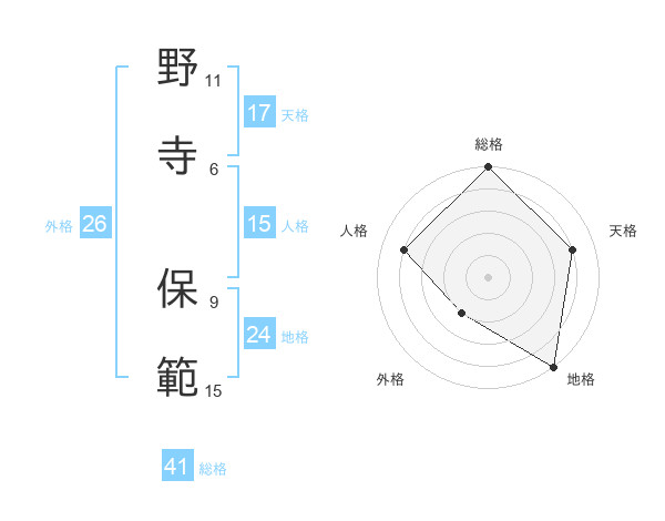 野寺 保範さんの総格は41画の5点!