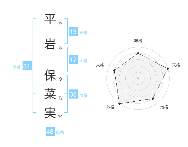 平岩 保菜実さんを姓名の画数から五運を鑑定
