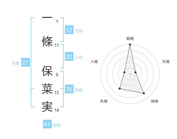 一條 保菜実さんを姓名の画数から五運を鑑定