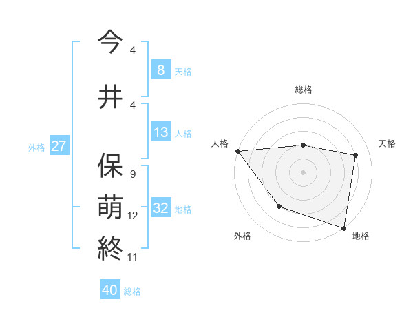 今井 保萌終さんを姓名の画数から五運を鑑定