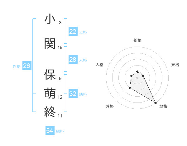 小関 保萌終さんを姓名の画数から五運を鑑定